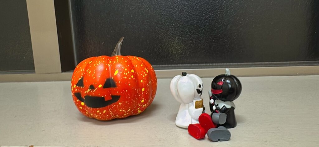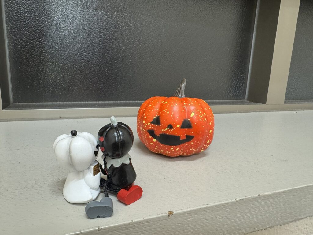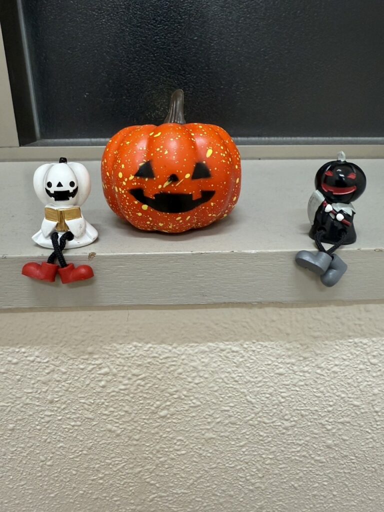 もうすぐハロウィン🎃 2025/10/23 ハロウィン, 学生, 行事, 🎃 もうすぐ ハロウィンですね🦇✨ 学校に飾られている この子たちは仲良くなったり❤ときには ケンカをしたり、毎日違う表情で楽しませてくれています。 明日はどうなっているかな… じつは、コレ、学生さんが毎日 動かしています ( *´艸`) カワイイ