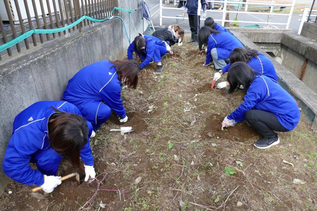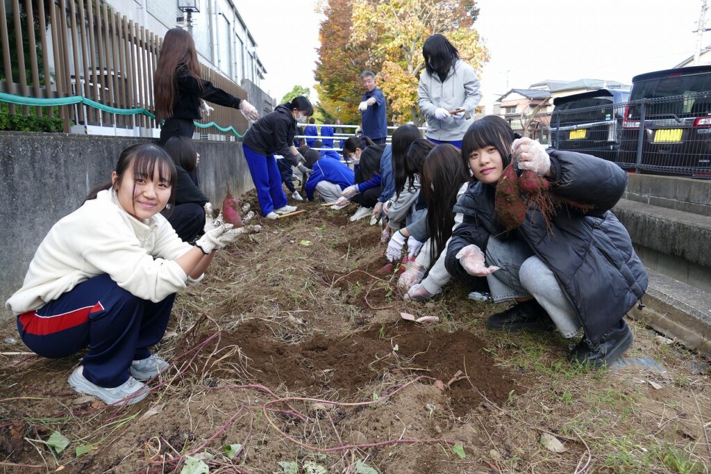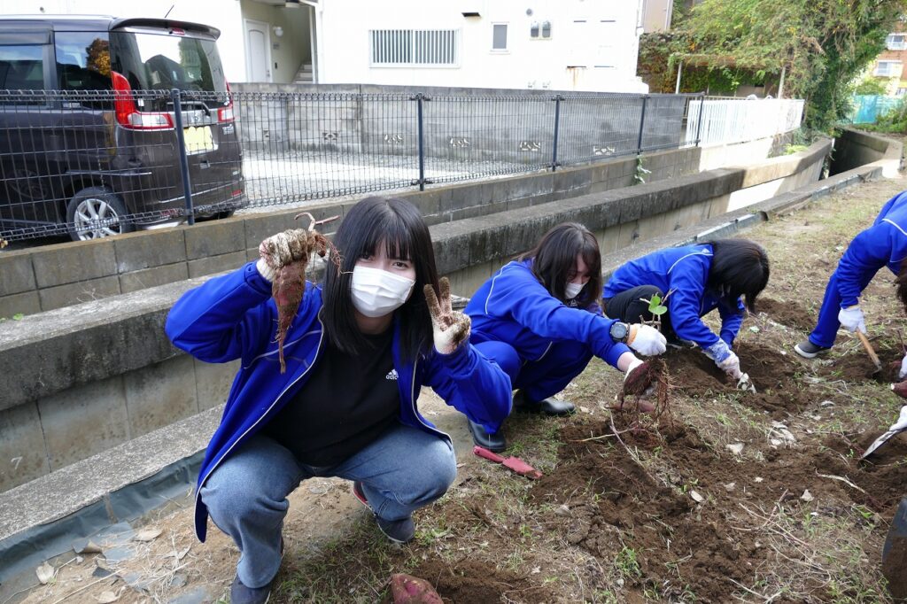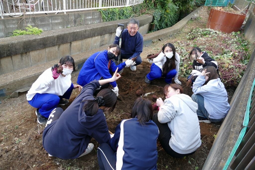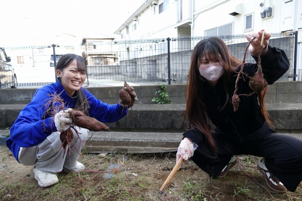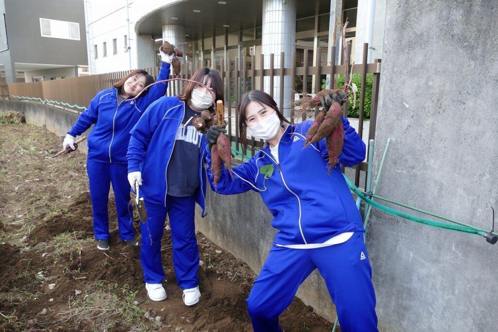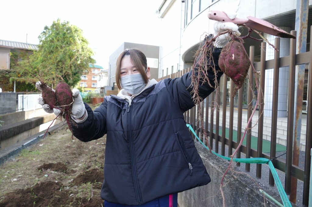 『保育内容「環境」の指導法』の授業の様子について 2025/11/18 授業風景, 芋ほり 11/12(水)に行った『保育内容「環境」の指導法』の授業の様子です。 今回は花植えと芋掘りを行いました! お芋は5月から苗植えを行なっていましたが、無事に育ちたくさん収穫することができました🍠 収穫した芋を嬉しそうに見せてくれて、学生たちは随時楽しそうに取り組んでいました😊